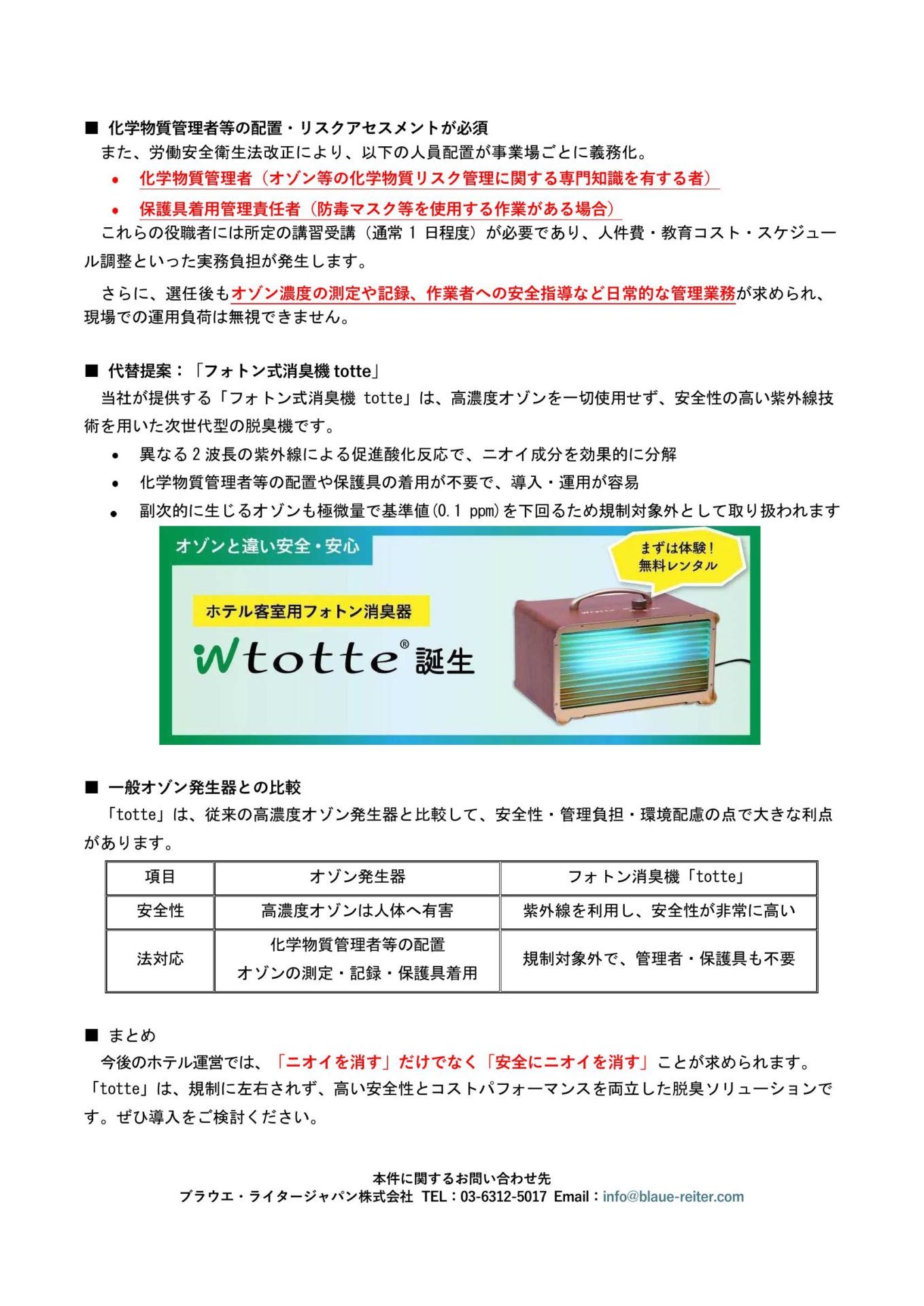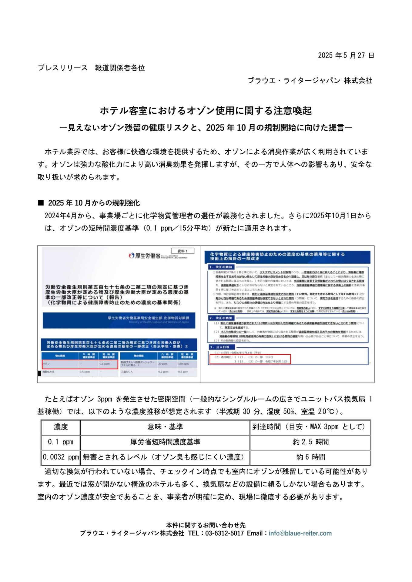 プレスリリース ホテル客室におけるオゾン使用に関する注意喚起